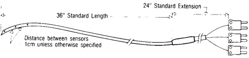 Teflon sheathed thermocouple wires are implanted with regular hypodermic needle. 14ga. or 17ga.
